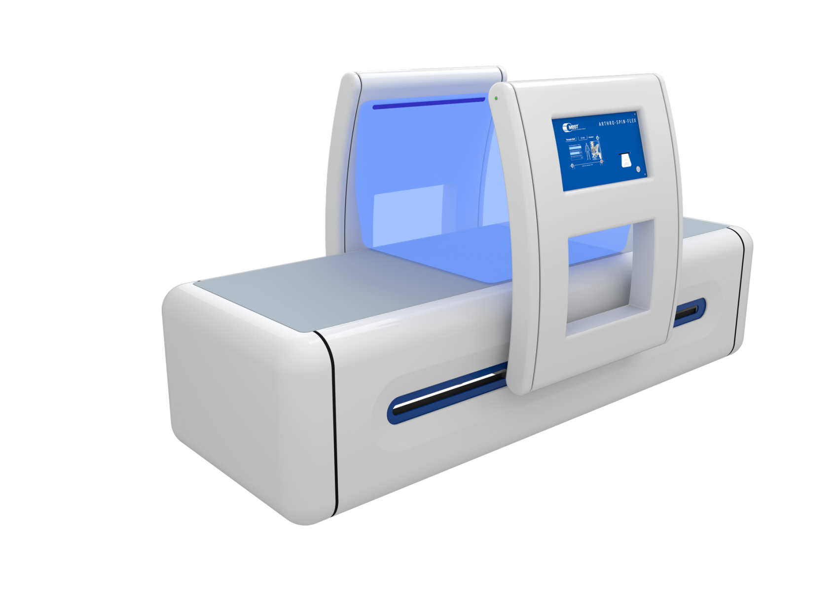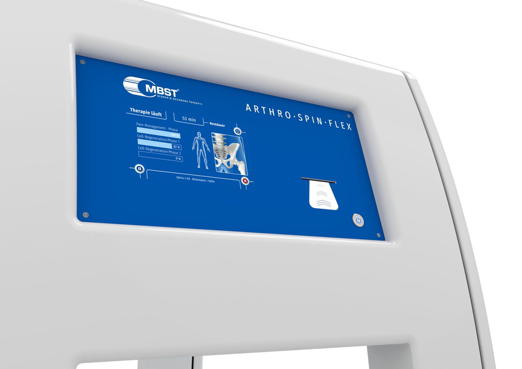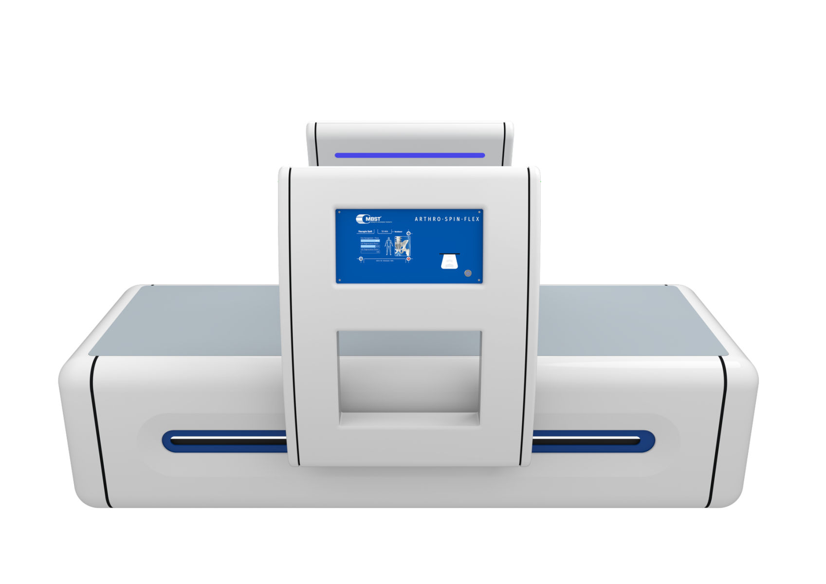Het MBST ARTHRO-SPIN-FLEX Therapieapparaat betreft hoogwaardige medische technologie. Dit MBST-Therapieapparaat combineert therapeutische effectiviteit en patiëntcomfort met een uniek design en overtuigt ook in de dagelijkse praktijk door zijn functionaliteit, gebruiksvriendelijkheid, esthetiek en hygiënische aspecten. Met zijn brede scala aan te behandelen indicaties zet ARTHRO-SPIN-FLEX nieuwe maatstaven. Het therapiesysteem maakt een betrouwbare, behoedzame en veilige behandeling van een groot aantal degeneratieve aandoeningen en verwondingen van het bewegingsapparaat mogelijk. Bovendien wordt het gebruikt bij aandoeningen van het botmetabolisme en om genezingsprocessen te versnellen. Dit maakt het een ideale aanvulling op post-operatieve, intramurale en revalidatie-begeleidende behandelstrategieën voor verwondingen en aandoeningen van het bewegingsapparaat.